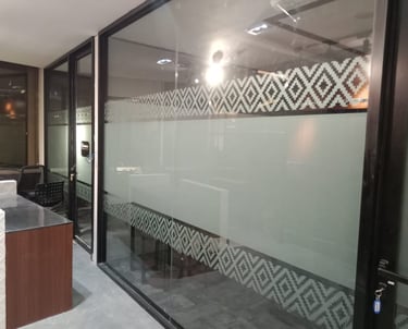 Efek buram (frosted) yang dihasilkan pada kaca, misalnya, memberikan tampilan mewah dan elegan, sangat cocok untuk kantor, restoran, atau hunian modern.